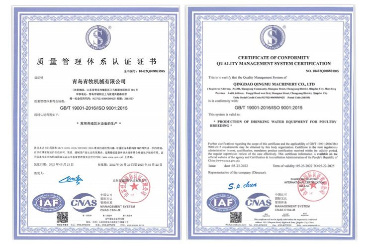 青島青牧機(jī)械有限公司成立于2013年,是一家集研發(fā)、生產(chǎn)、銷售、服務(wù)于一體的綜合性企業(yè)。公司專注于家禽飲水設(shè)備的研發(fā)和生產(chǎn),擁有專業(yè)的研發(fā)團(tuán)隊(duì)、先進(jìn)的加工設(shè)備以及自動化組裝線,力求打造“簡單、高效、環(huán)保”的高端禽用飲水系統(tǒng)。
